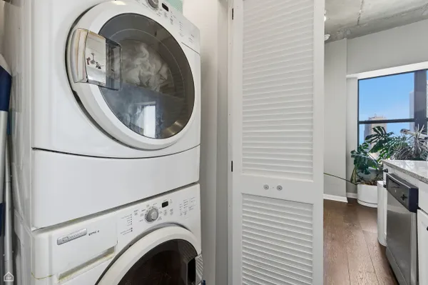 Rarely available Corner Condo with incredible Lake Michigan views in one of Edgewater's premier Elevator buildings! Immediately as you enter, you will be taken aback with the warmth and style this condo provides. Drenched in sunlight, this unit faces South East with beautiful views of Lake Michigan and iconic Chicago buildings. The Open Kitchen is updated with Stainless Steel Appliances and flows perfectly into the Living Area, perfect for entertaining. This concrete loft features soaring 10-foot ceilings, an Open-Concept living and dining area, cozy Gas Fireplace, In-Unit Laundry, Central Heat and Air Conditioning. The spacious primary bedroom includes an en-suite bathroom and the 2nd bedroom is also well-sized, offering options for a 2nd bedroom or a work-from-home lifestyle. Enjoy this Full-Amenity Elevator Building with Fitness Center, Party Room, Dog Run, and Rooftop Deck with Fire Pit and panoramic lake views. Prime Edgewater neighborhood just steps from the lake with unbeatable access to beaches, lakefront trails, eclectic dining, shopping and convenient CTA access. Only 1 block from Broadway Street and borders Andersonville, offering endless walkability. This is the perfect blend of city living with neighborhood charm. Pets welcome. Attached garage parking $25k.